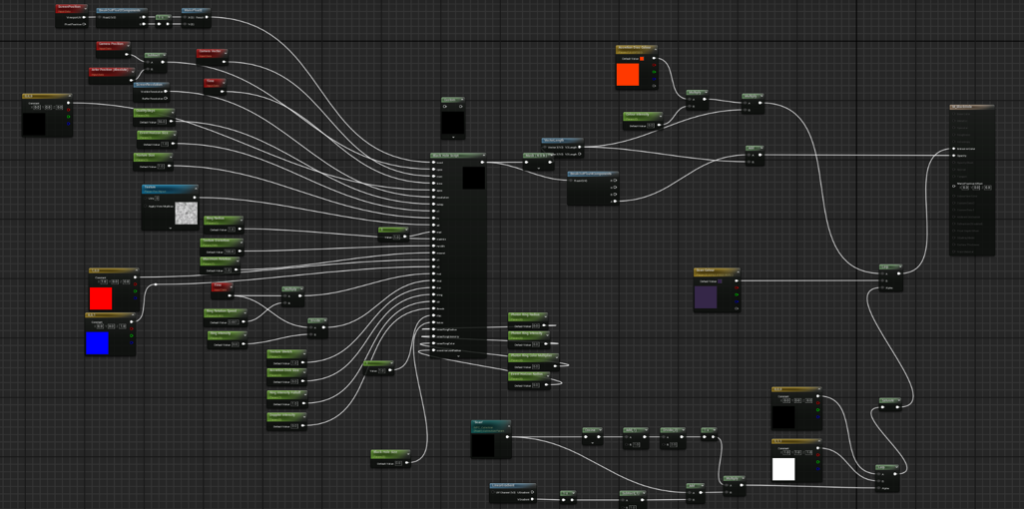 This moment triggers a carefully timed sequence of post-process effects, including enhancements to an existing post-process material. A fisheye lens distortion simulates gravitational warping, while the vignette dynamically changes color to heighten the sense of tension and collapse.