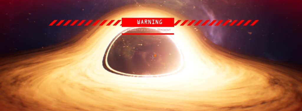 To conclude the star’s lifecycle in a compelling way, this phase takes narrative inspiration from the time loop mechanic featured in Outer Wilds. When the black hole reaches a critical size, screen shakes intensify, the vignette color shifts from blue to red, and a warning UI appears: “Spaghettification Imminent” — a scientifically accurate term referencing the extreme tidal forces near a black hole.