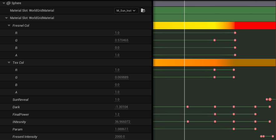 Using this sequencer, key parameters from the Main Sequence material were adjusted in real time to reflect the star’s growth and transformation, enabling a visual evolution from a main sequence star to a red supergiant.