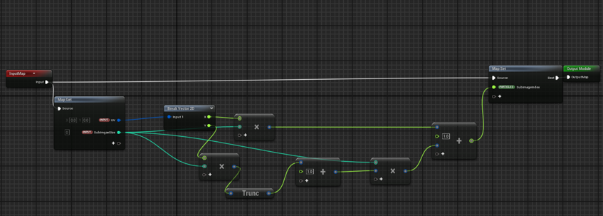 In Niagara systems, scratchpad modules can be created to build custom modules that change the properties of the system. These nodes map the UVs of the same sphere mesh as the red supergiant to each individual particle spawned.