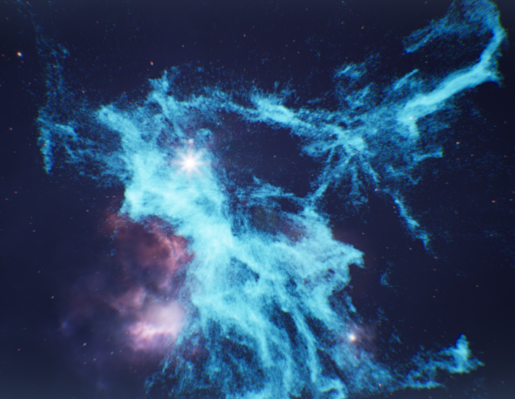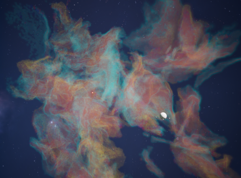This nebula was developed in Houdini which converts a volume into a series of points in space that are influenced by turbulent noise fields to simulate realistic gas structures.